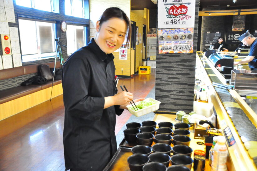 同じく「ピア万代店」でホールスタッフとして働くのが、下林美咲さんだ。下林さんは佐渡出身で、小さい頃から弁慶の寿司を食べて育ったそうだ。