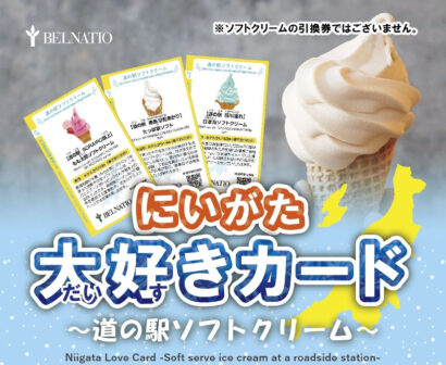 新潟県内の道の駅で人気の「ソフトクリーム」をテーマにしたカード。地元食材を使用したものや、その土地ならではの味わいなど、思わず「食べてみたい!」と感じる個性豊かなソフトクリームを紹介。