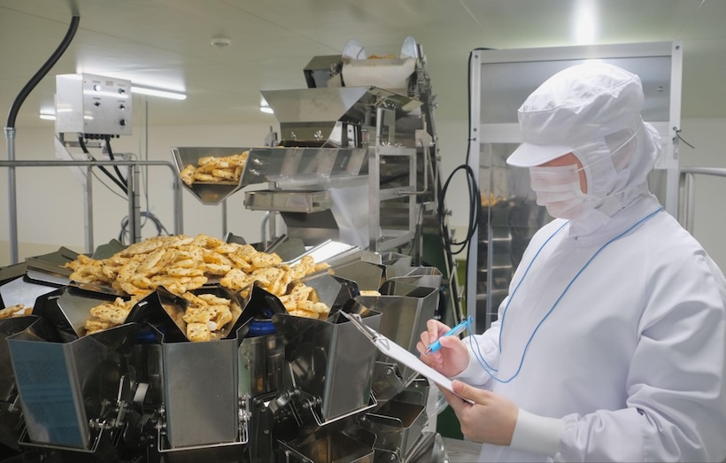 米菓大手・岩塚製菓株式会社(新潟県長岡市)の工場内──海外へも輸出される「おかき」がラインを流れていく。その様子を静かに見つめているのが、同社品質保証部の庭山愛さんだ。