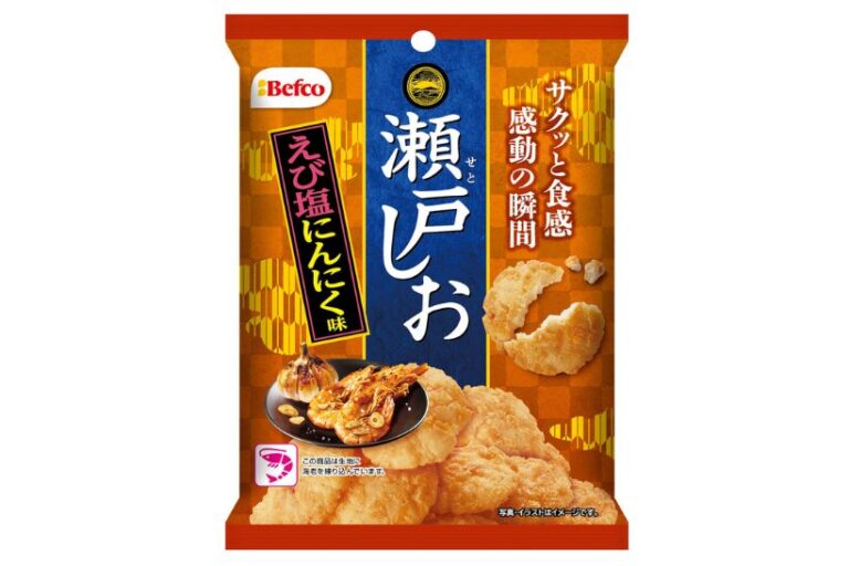 栗山米菓「瀬戸しお」に新フレーバー誕生、「えび塩にんにく味」が2月23日からコンビニで先行発売