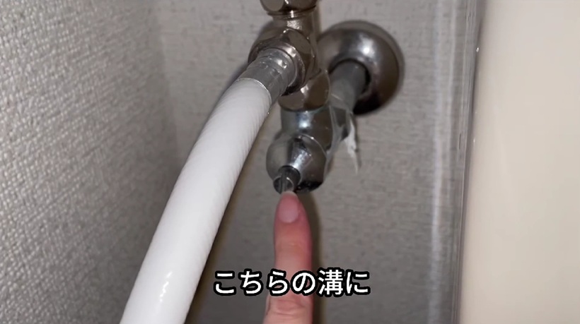 今回は、こちらの硬貨を使って締めていきます。止水栓の溝にマイナスドライバーなどを差し込み、回していくことで水栓を止めることができます。