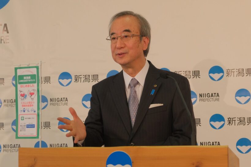 花角知事は1958年、新潟県佐渡市生まれ。1982年に東京大学法学部卒業後、運輸省(現・国土交通省)入省。新潟県副知事などを経て、2018年6月に新潟県知事に就任し、現在2期目。