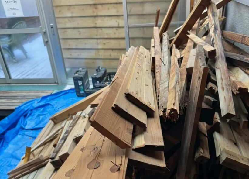 同館では改修中の「森のサウナ」が一時利用できない期間を活用し、来館者がサウナを楽しめる環境を維持するとともに、廃棄物削減にも取り組む。再利用しているのは、解体した壁材やベンチ材の木材部分で、燃焼時の安全性に配慮し使用可能な木材のみを選別。本来は産業廃棄物として処理される木材だが、「今あるものを活かす」という考えから燃料化し、テントサウナ約8日分として活用している。