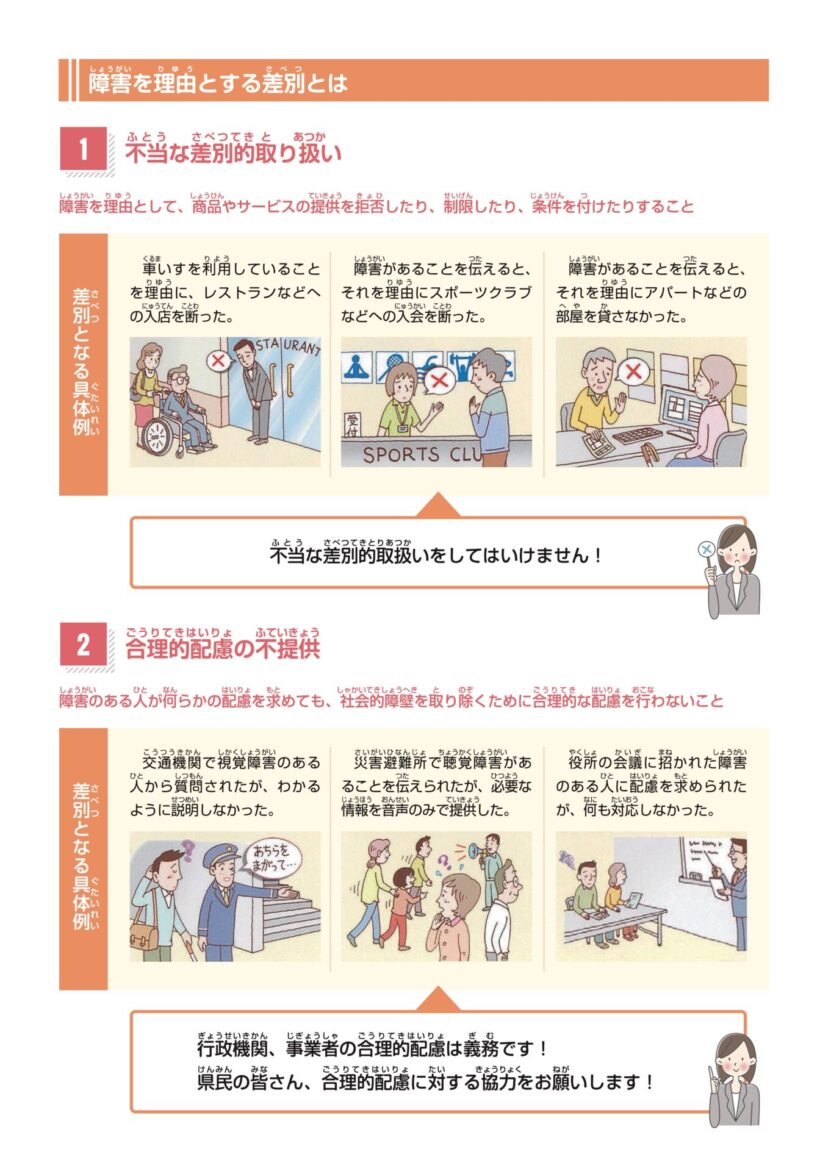 新潟県の発行したリーフレットより、障害を理由とした差別の具体例