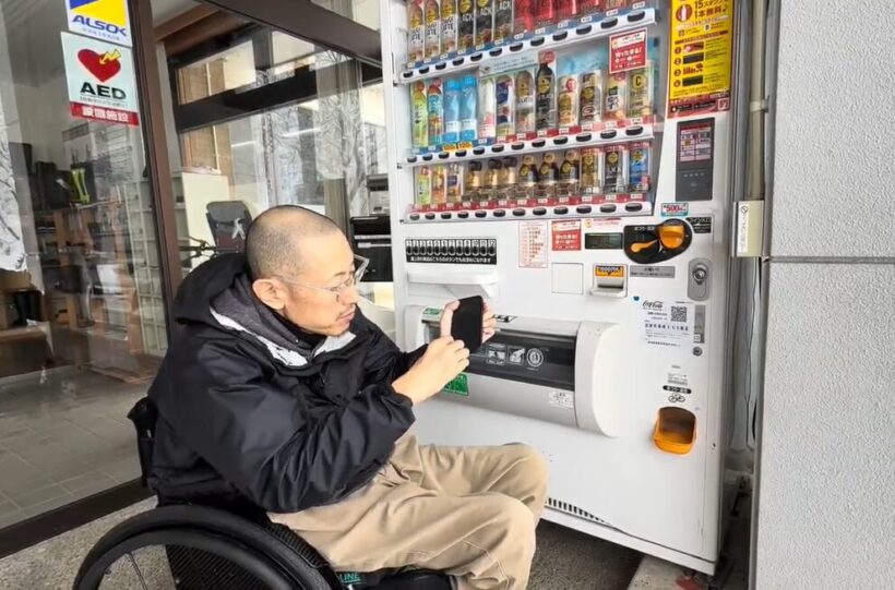商品選択ボタンを低い位置に置いたり取り出し口の形状を工夫するなど、車いす利用者でも使いやすいデザインとなってる自動販売機の導入も一部で行われている(写真は南魚沼市ふれ愛支援センターで撮影)