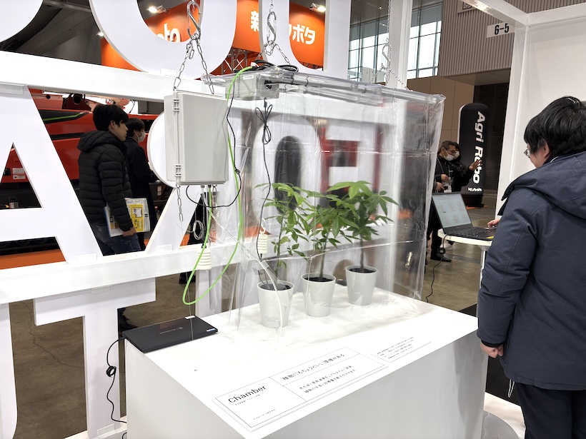 光合成と蒸散速度をリアルタイムで実測できる展示。同社は、天候に左右されにくく、効率よく安定した収穫を目指すスマート農業を促進している