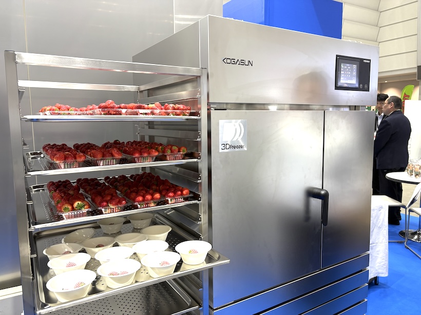 株式会社ミタカ(新潟県柏崎市)のブース。最新の3Dフリーザーの展示では、凍結時間を短縮かつ品質を保った技術を紹介している