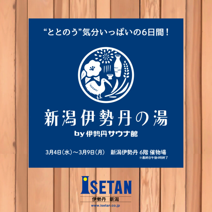 新潟三越伊勢丹(新潟市中央区)は3月4日から9日まで、新潟伊勢丹6階催物場で「新潟伊勢丹の湯 by 伊勢丹サウナ館」を初開催する。伊勢丹新宿店が主催し、県外でも人気を集める催し「伊勢丹サウナ館」が、新潟で初めて展開される。