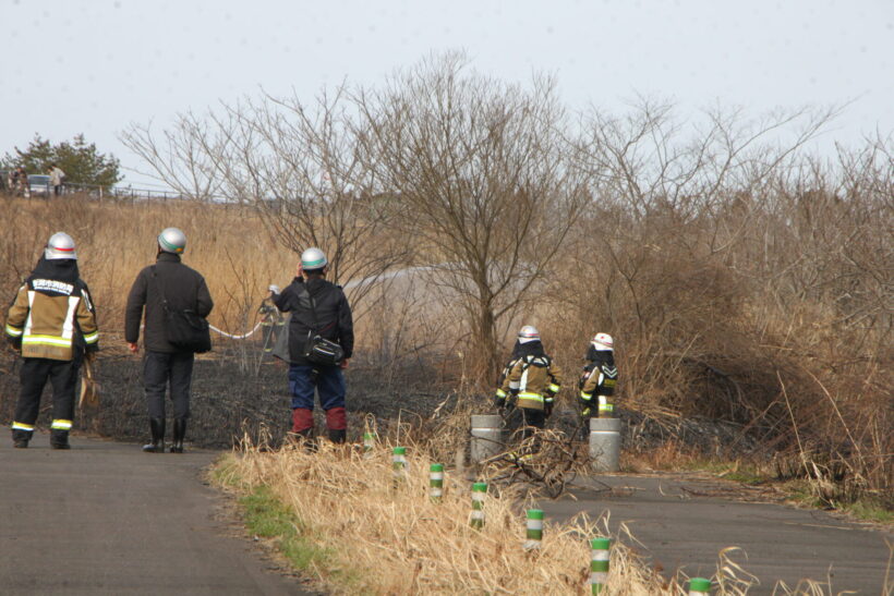 江南警察署によると3月2日14時ごろ、新潟市江南区横越の阿賀野川左岸河川敷で大規模な枯草火災が発生した。