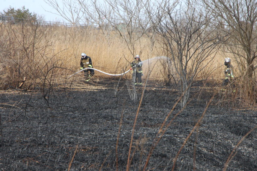 警察によると火災を目撃した市民から「土手道路付近が100メートルくらい燃えている」との通報が入ったのは14時22分頃。消防と警察が現場に駆け付け、懸命な消火活動の末、15時11分に火災は鎮圧された。火災による焼失面積は約1,440㎡で、規模の大きさがうかがえる。