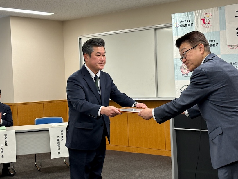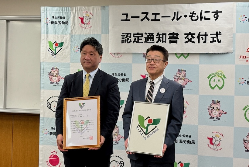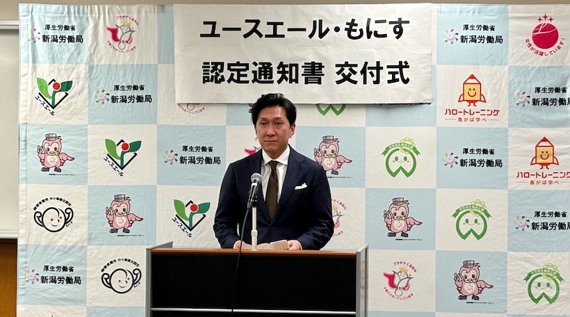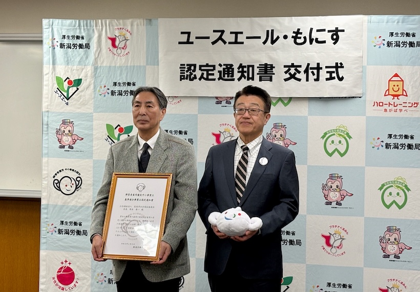 3月3日には新潟労働局(新潟市中央区)で認定通知書交付式が行われ、同局の福岡洋志局長が各社へ認定書を手渡した。