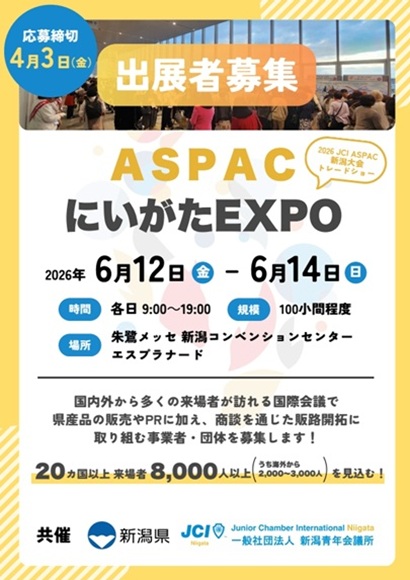 新潟県ホームページ「ASPACにいがたEXPO(2026 JCI ASPAC新潟大会トレードショー)開催」