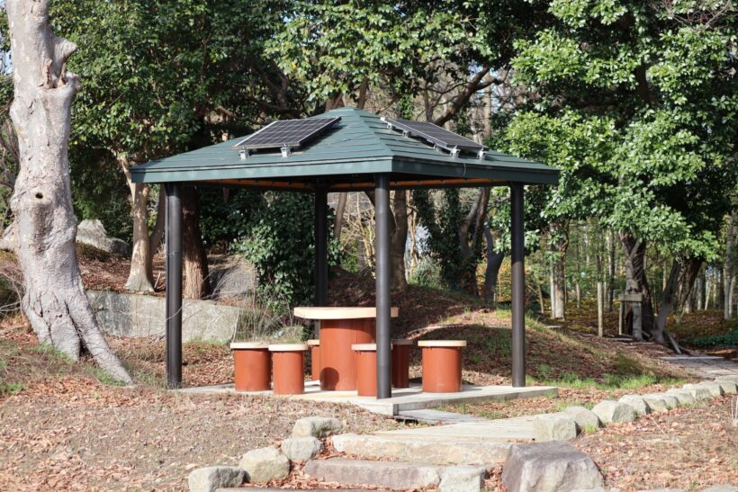 【公園が充電スポットに】明和工業、太陽光発電付き休憩所を開発 スマホ400台分充電可能