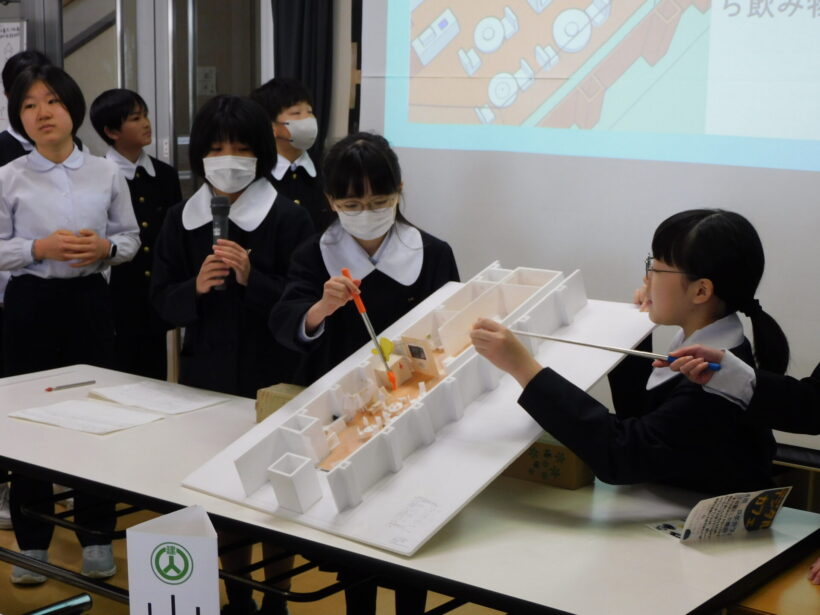 児童たちは実際の空きスペースを題材に、「誰が」「何のために」「どのように使う空間にするのか」を考えながらリノベーションのアイデアを検討してきた。これまでに現地見学を行ったほか、大学教員や建設会社の担当者による講義を受け、実際の改修を想定した構想を練ってきたという。