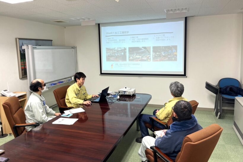 Jマテ.カッパープロダクツがモンゴル高専生インターンシップを受入れて、社内で研修をする様子(写真提供:Jマテ.カッパープロダクツ)