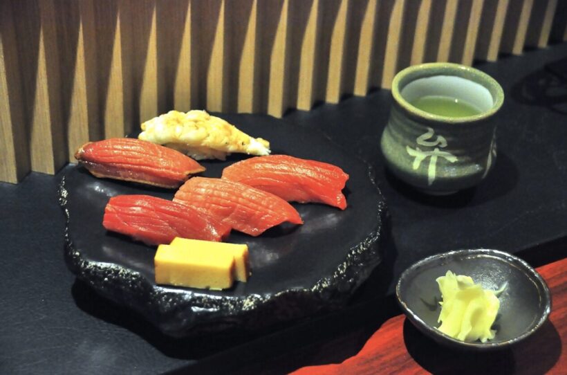 天然本マグロ3貫セットと(写真手前)はオープン限定で1,000円。写真左奥は、「匠の寿司」シリーズの大トロたまり醤油漬け