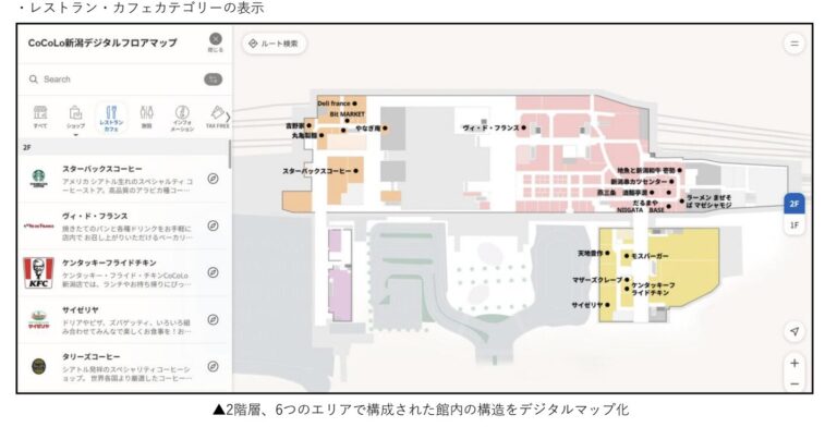 JR東日本新潟シティクリエイト株式会社(新潟市中央区)は3月18日、JR新潟駅の商業施設「CoCoLo新潟」(同区)に、ボールドライト株式会社(東京都新宿区)の施設マッププラットフォーム「メタマップ」を採用したデジタルフ … 続きを読む 「CoCoLo新潟」にデジタルフロアマップ導入 最短ルート案内や多言語対応