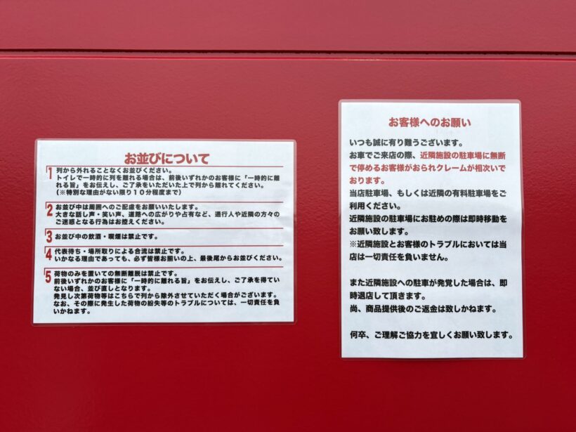 しかし、その後の展開は早かった。並んでいる間にも駐車場には次々と車が入ってくる。16時45分頃には満車状態となり、店の前には行列が形成されていた。オープンからまだ2週間足らずとは思えない勢いで、その人気ぶりを改めて実感する。