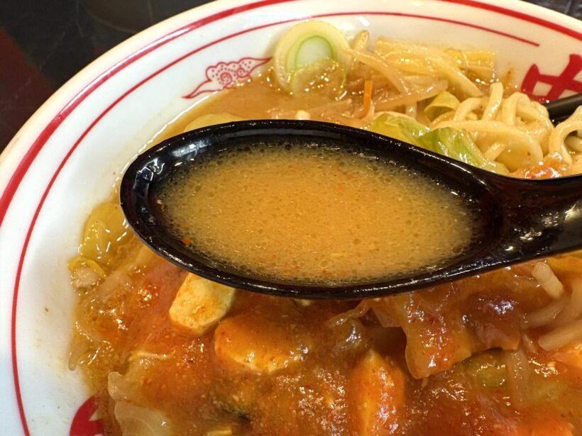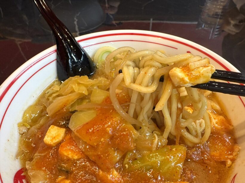 ベースは味噌。そこに炒め野菜の甘みとコクがしっかり乗り、その上から唐辛子の辛さがじわじわと追いかけてくる。辛いだけではなく、旨みの層が厚い。