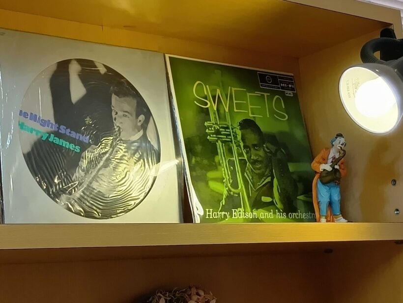 店内にはジャズの名盤がディスプレイされている