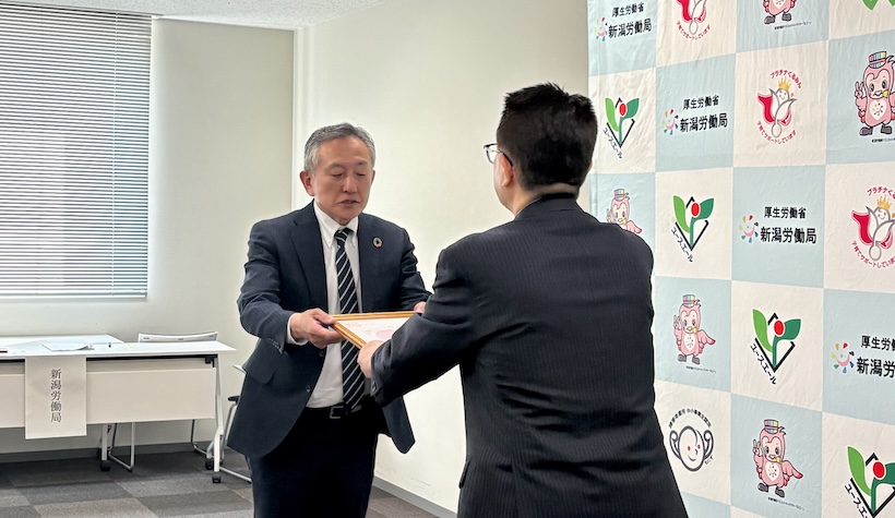 3月25日には、新潟労働局(新潟市中央区)で認定通知書交付式が行われ、福岡洋志局長から各社へ認定証が手渡された。