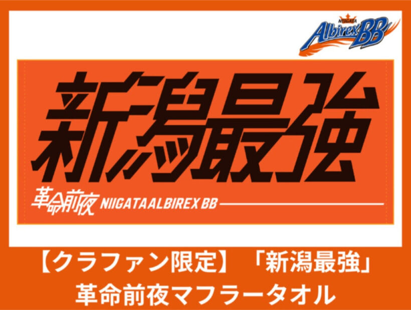 「新潟最強」革命前夜マフラータオル(スポチュニティのプレスリリースより)