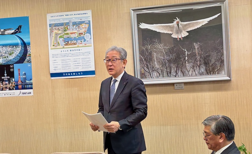 2022年に就航した国際フィーダー定期航路に触れ、締結の背景を語る新潟県交通政策局の濵口信彦局長