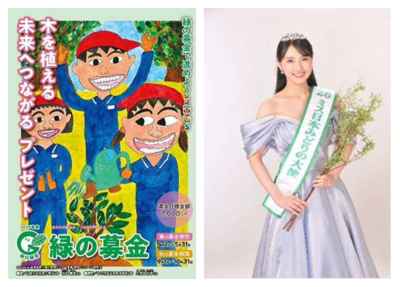 (左)令和8年度 新潟県国土緑化運動ポスター (右)第4代ミス日本みどりの大使・永田愛実さん