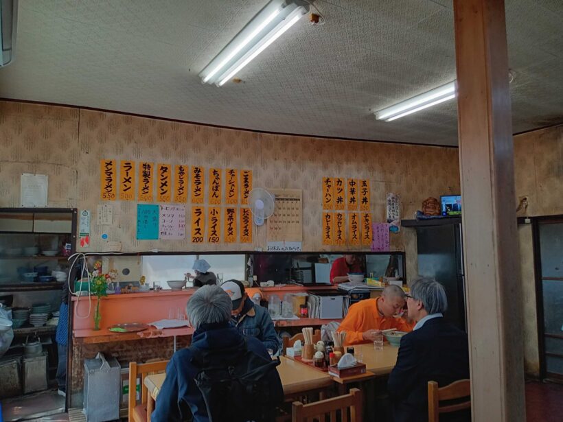 順番が来て、店内に通される。ここは「相席上等」のシステム。メニューは基本的に、厨房周りに張られている短冊を見る。ラーメン500円、タンメン550円、もやしラーメン550円、チャーハン550円、かつ丼700円・・・・マジか、これ。令和8年だぞ。気になったのは「特製ラーメン500円」。普通のラーメンと同額で、もやしラーメンより50円安い「特製」。謎は深まるばかりだ。
