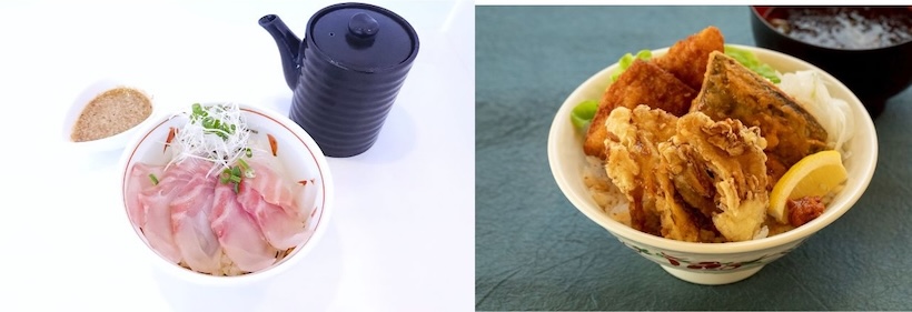 左から真鯛のごまダレ丼、新潟うま辛丼(株式会社ニッカイ米山より画像提供)