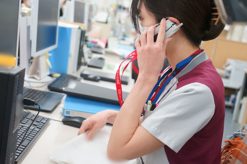 患者の家族だけでなく関係機関とも退院や転院に向けて調整することが多いので、PHSは手放せない