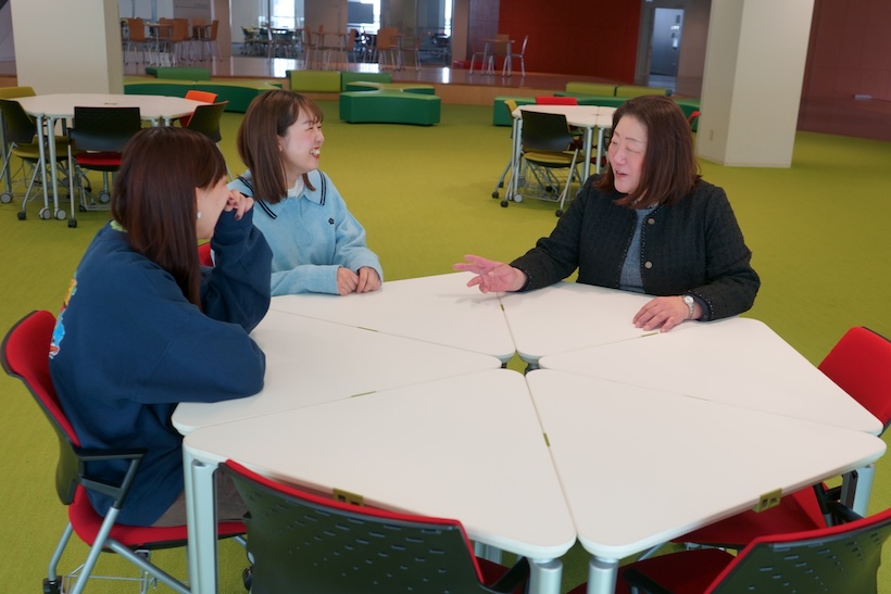 テーマに沿って学生同士で議論し、コミュニケーション力を培う。新潟青陵大学では学生が主体的に学ぶカリキュラムを展開している。こうした実践的な学びが今の宮山さんを支える原動力となっている
