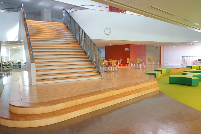 2017年に建て替えが行われた新校舎には実習室や大学生たちが集うスペースが広がる