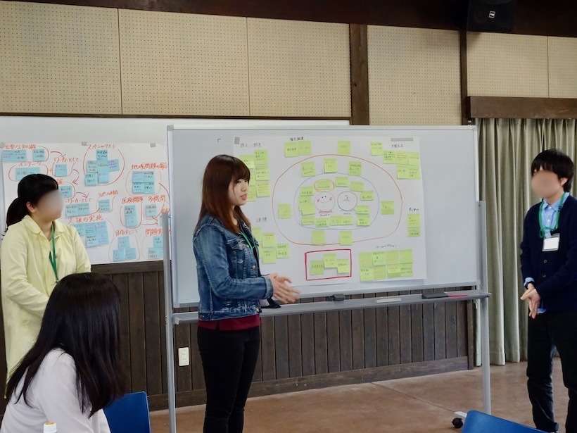 学生時代の宮山さん。3年次の秋に行われる福島潟での合宿では、話し合いやロールプレイなど実践的な演習を中心に仲間と一緒に学びを深める