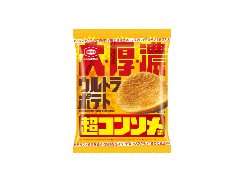 亀田製菓株式会社(新潟市江南区)は、厚みとサイズを追求したスナック菓子「ウルトラポテト 超コンソメ味」をリニューアルし、4月6日から全国のセブン-イレブンで先行発売する。米菓製法の技術を活用した独自食感と、濃厚な味わいを強化した。