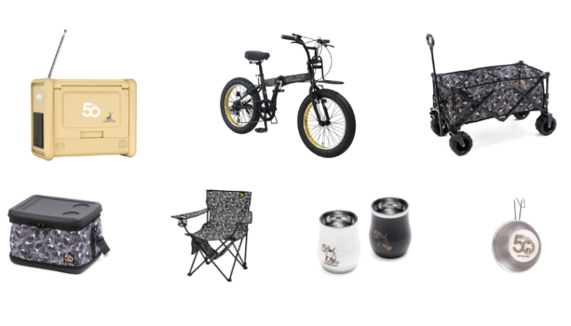 商品は、50周年限定デザインを施したオリジナルアイテム。「50th TV付き大容量バッテリー518Wh」が1名、「50th ワイルダー折り畳み自転車」3名、「50th 収束型4輪ワイドタイヤキャリー」が6名、「50th スーパーコールドクーラーバッグ25L」が30名、「50th 棚モック付ラウンジチェア」が60名、「50th 鹿番長<香る>真空断熱タンブラー」が100名、「50th 鹿番長ステンレスシェラカップ」が300名。
