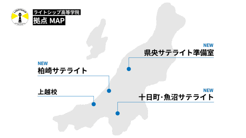 株式会社LIGHTSHIP(新潟県上越市)は、同社が運営するライトシップ高等学院の教育支援提供エリアを4月から拡大し、新たに柏崎地域および十日町・魚沼地域にサテライト拠点を開設すると発表した。
