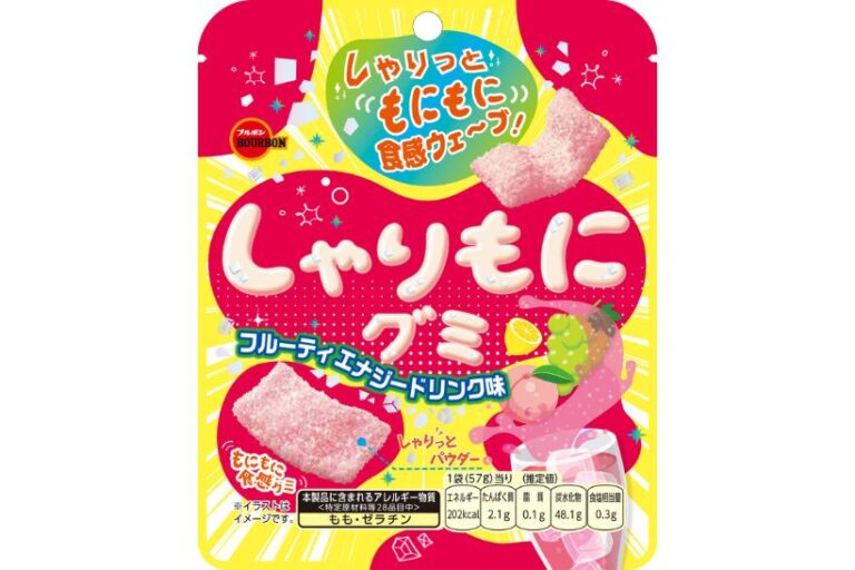 株式会社ブルボン(新潟県柏崎市)は、独自の「しゃりもに食感」が特徴のグミシリーズから、新フレーバー「しゃりもにグミ フルーティエナジードリンク味」を4月7日から全国で発売する。 新商品は、エナジードリンクの味わいにピーチ … 続きを読む 【新商品】ブルボン、「しゃりもにグミ」に新味 3種果汁のエナジードリンク味を発売
