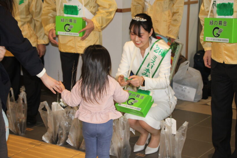 さらに今年1月に開催された「ミス日本グランプリ2026」で「ミス日本みどりの大使」に輝いた永田愛実さんも新潟に駆け付け募金活動に参加。胎内の子供たちとともに街頭に立って緑化活動への支援を呼びかけた。