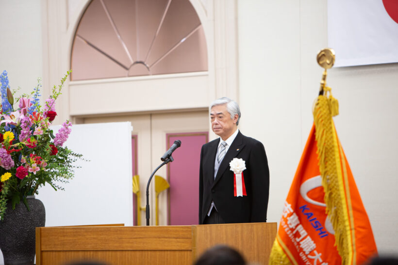 2026年度入学式では各務茂夫学長は式辞を述べ、生成AIの進化や複雑化する社会課題に触れ、「専門職大学で学ぶ価値の本質がまさにこの教育革新にある」と強調。これまでに3学部全てで就職率100%を連続達成している実績を紹介した上で「失敗をおそれないでください。困難にぶち当たることこそが、『前進している』、あるいは『成長している』と同義であるという認識を持つことが大事」と新入生を激励した。