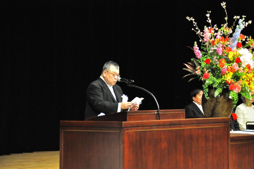 式辞を述べる杉原多公通学長兼校長