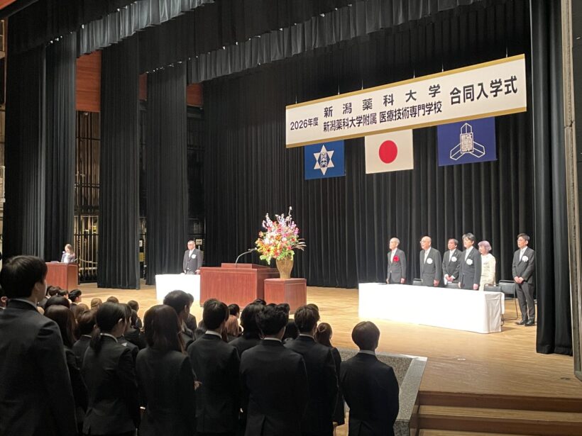 新潟薬科大学(新潟市秋葉区)および新潟薬科大学附属医療技術専門学校は4月6日、新潟県民会館において2026年度入学式を挙行した。来年2027年に控える「新潟科学大学」への名称変更と新体制への移行を前に、現名称としては最後となる入学式となった。
