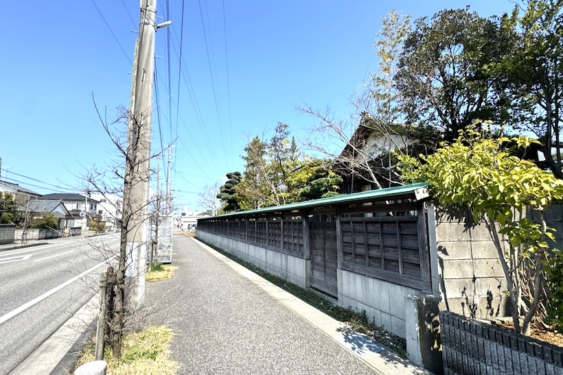 新潟市東区の商業施設や住宅が密集するエリアに「松楓園」はある。幹線道路側には塀があり、邸宅内は見えない