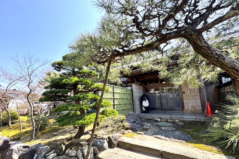 シェアオフィスを示す看板などは無い。玄関前には美しい造形の松の木があり、来訪者を迎え入れる