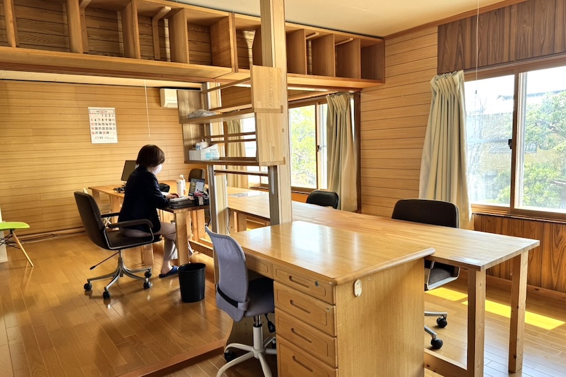 運営するのは合同会社松楓園。2018年4月にシェアオフィスとしてスタートし、現在は正会員13社、寄付会員3社と個人1名が利用する。建築士や造園業、大工、飲食店オーナーなど、ものづくりや地域に根ざした職種の利用者が多く、セカンドオフィスとしての活用も目立つ。月額15,000円という料金で、24時間365日利用できるほか、登記や個室利用にも対応している。
