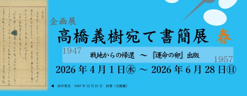 同展は、2021年に寄贈された高橋義樹関連資料をもとに構成し、高橋に宛てられた書簡を紹介するもの。前期に当たる本展では、1947年から1957年までの書簡を展示する。