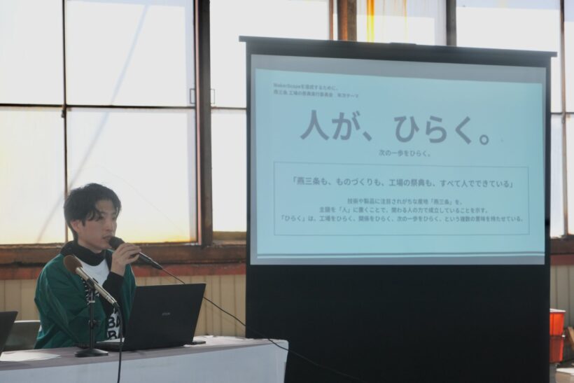 実行委員会は4月9日に記者会見を開催した。今回の実行委員長を務める燕物産株式会社(新潟県燕市)の捧開維専務取締役は、「来場者数や売上ではなく、関係人口や賛同者の数、関わっていただいたすべての人の満足度が評価される1年にしたい」と話した。