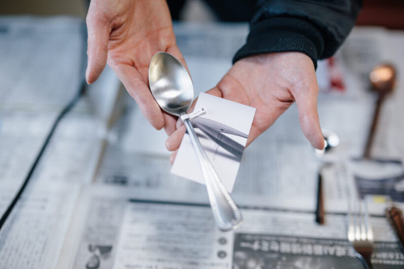 合格の証が巻かれたスプーン。プレスリリースより