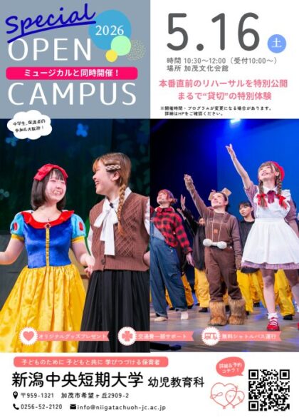 新潟中央短期大学(新潟県加茂市)は、5月16日にオープンキャンパスを開催する。