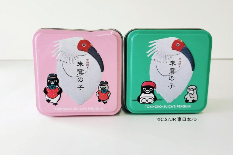 同商品は、2026年度末での卒業が発表されたSuicaペンギンとのコラボ企画で、黄身あんの「朱鷺の子」と新潟ブランド苺「越後姫」を使用したいちご味の2種類を用意。それぞれ緑色の缶とピンク色の缶で展開する。